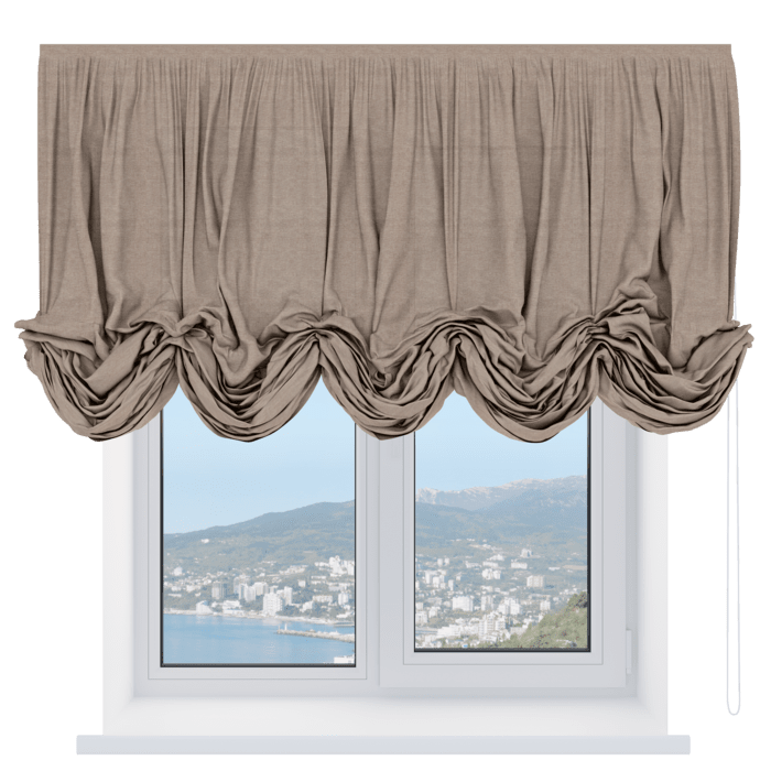 Австрийская штора лён кашемир коричневый, карниз верёвочный
